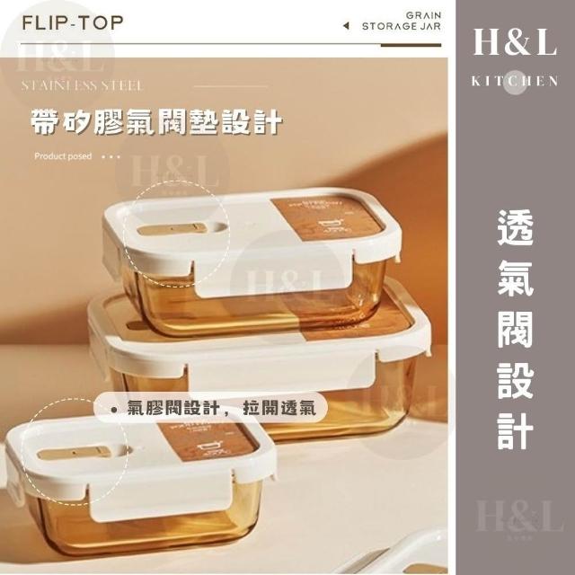 H&L 匠心優廚琥珀色玻璃保鮮盒 透明玻璃保鮮盒 耐熱玻璃便當盒 密封保鮮盒便當盒 分隔便當盒 分隔便當盒 可微波餐盒