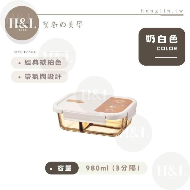 H&L 匠心優廚琥珀色玻璃保鮮盒 透明玻璃保鮮盒 耐熱玻璃便當盒 密封保鮮盒便當盒 分隔便當盒 分隔便當盒 可微波餐盒