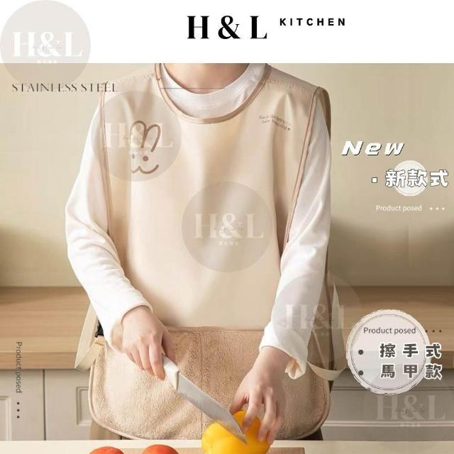 H&L 匠心優廚馬甲款兔兔防水擦手圍裙 馬甲圍裙 工作圍裙 防水圍裙 圍裙 圍裙工作服 烘焙圍裙 咖啡圍裙 牛仔圍裙 廚房圍裙