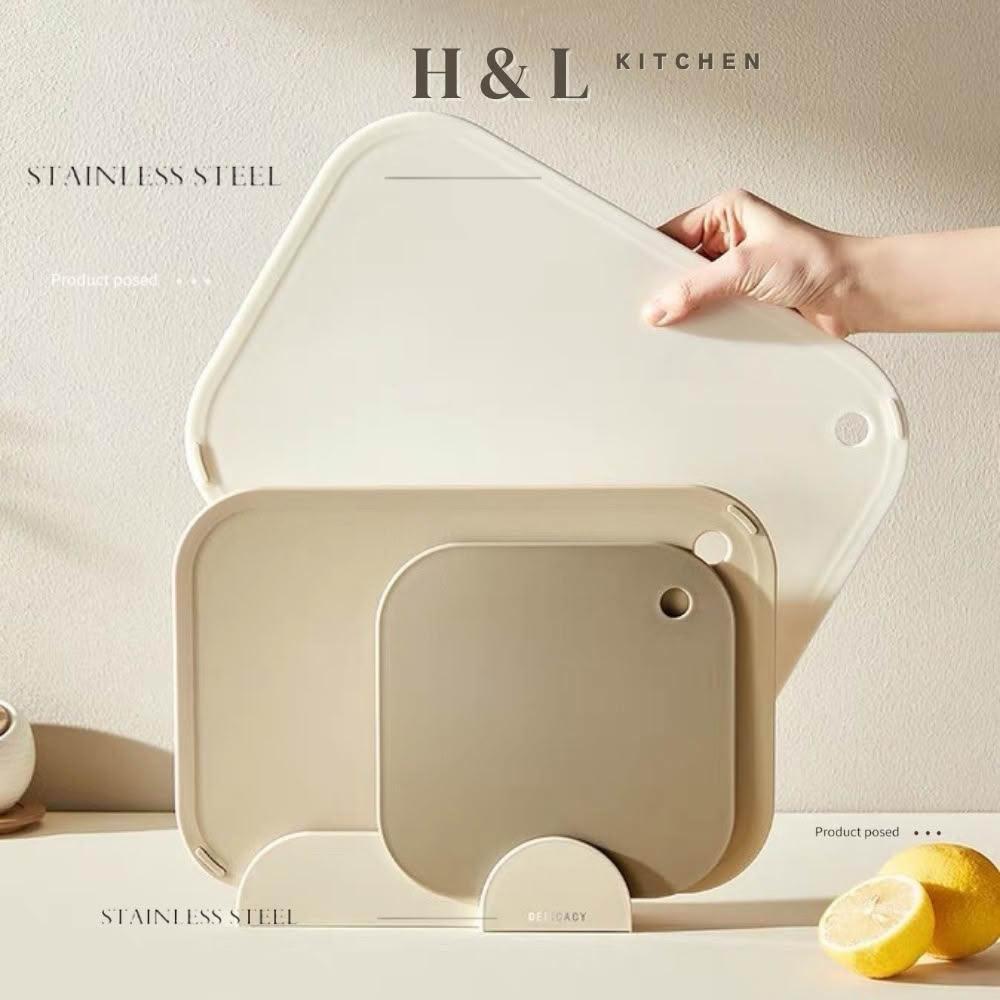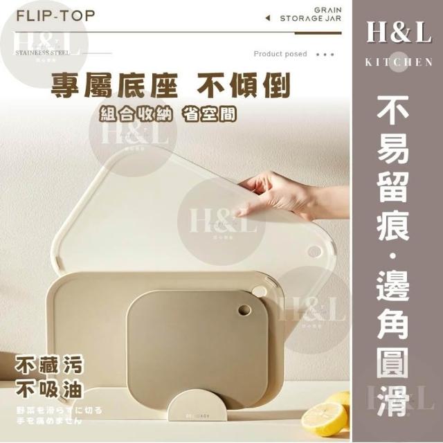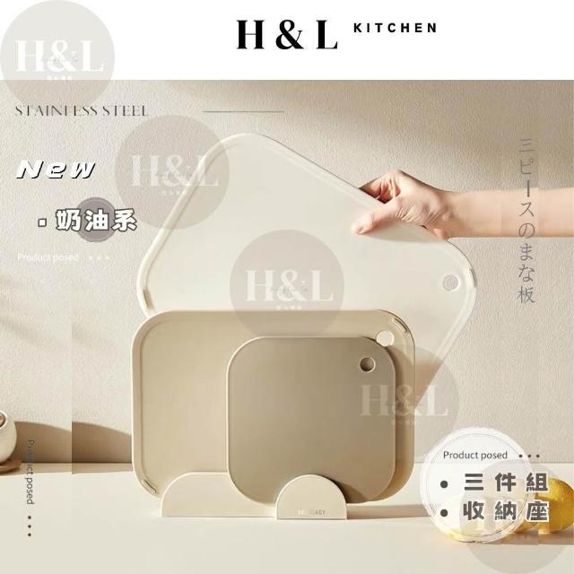 H&L 匠心優廚奶油系抗菌收納座砧板組 砧板 抗菌砧板 切菜板 菜板 切菜砧板 環保砧板 防霉砧板 廚房砧板 料理砧板 雙面砧板