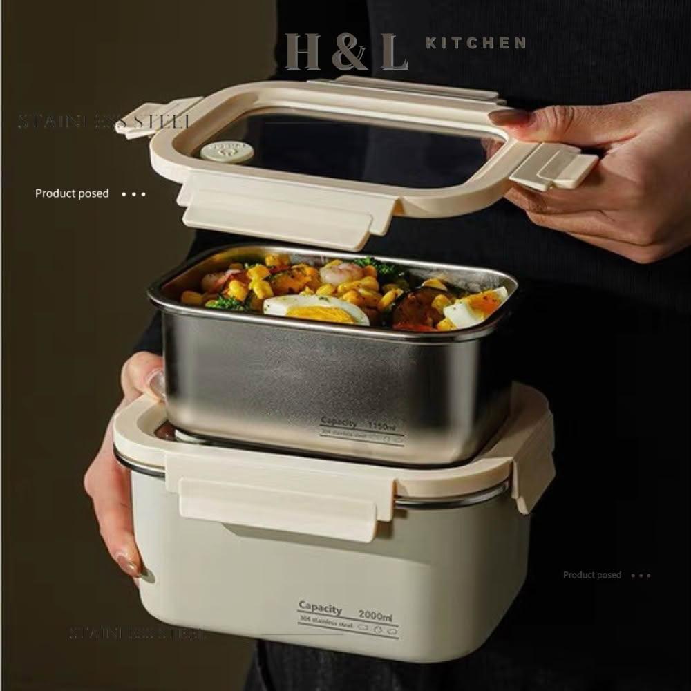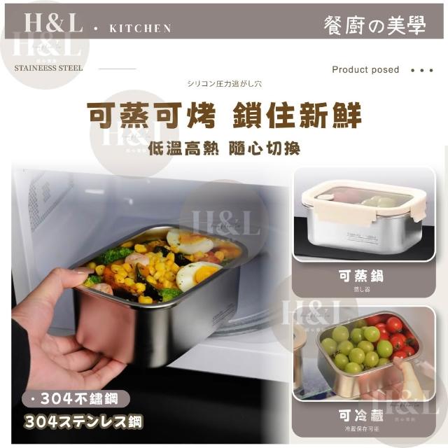 H&L 匠心優廚【可微波|不鏽鋼保鮮盒】 食品級304不鏽鋼保鮮盒 304不鏽鋼 長方形保鮮盒 防漏 便當盒 不鏽鋼 密封盒 野餐 露營