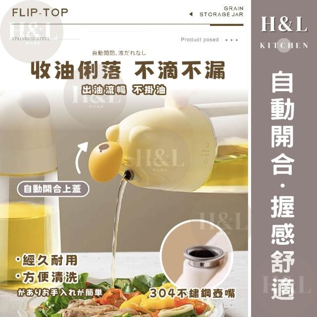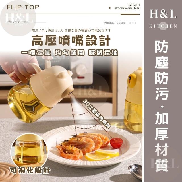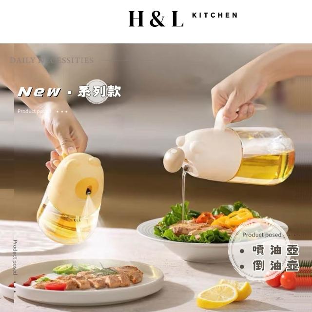 H&L 匠心優廚【小熊系列款|噴&倒油壺】噴油瓶 噴油罐 噴油壺 油壺 倒油瓶 調味罐 伸縮調味料罐 家用廚房調味盒 調味罐 調味盒