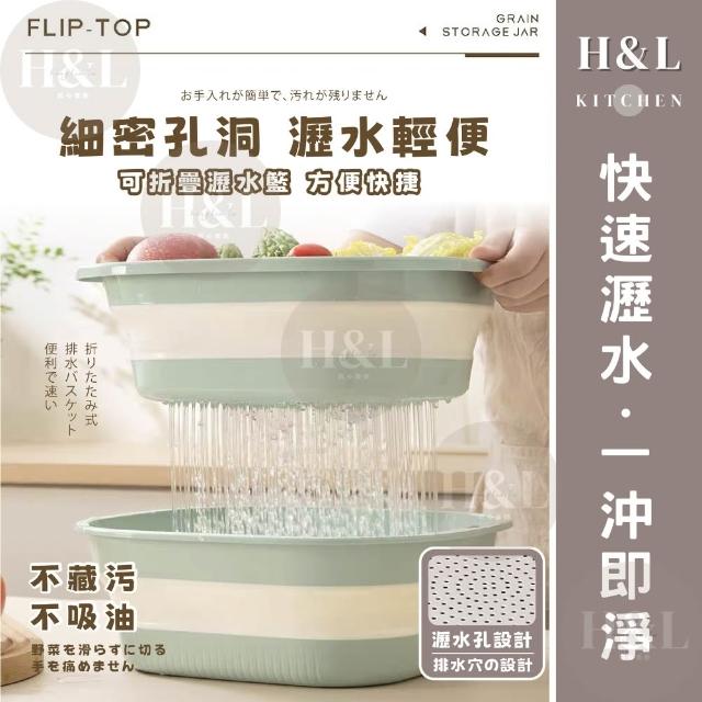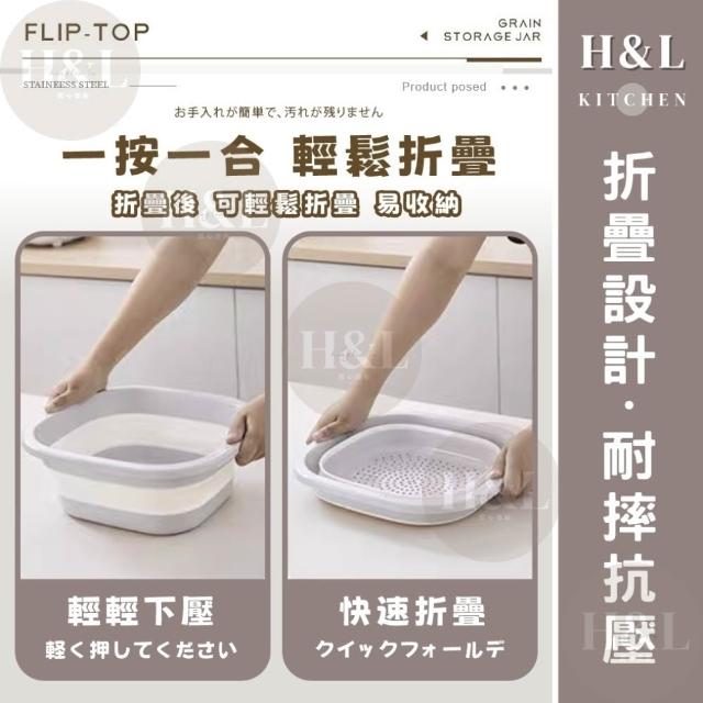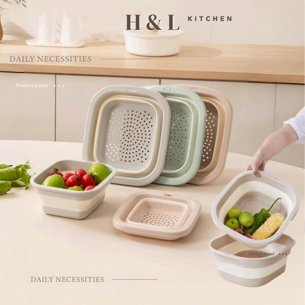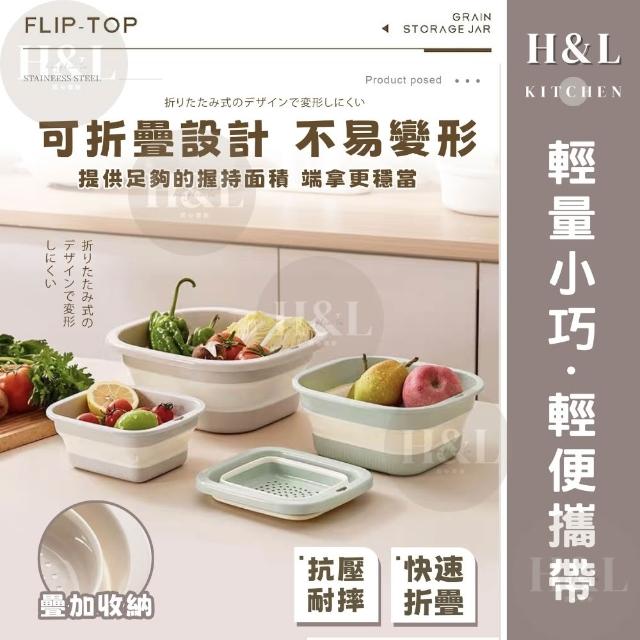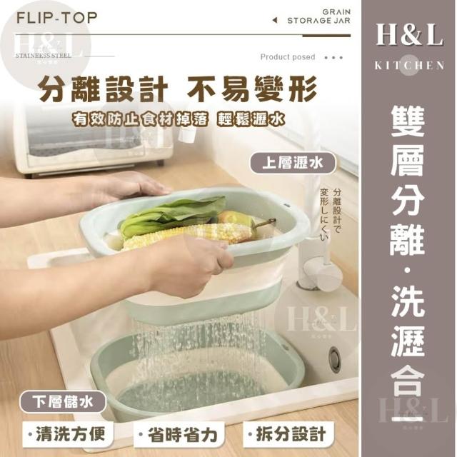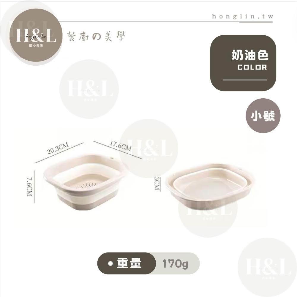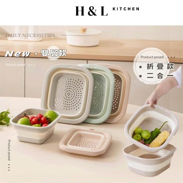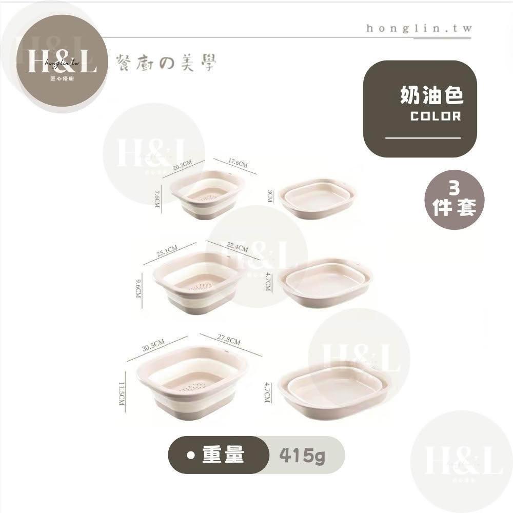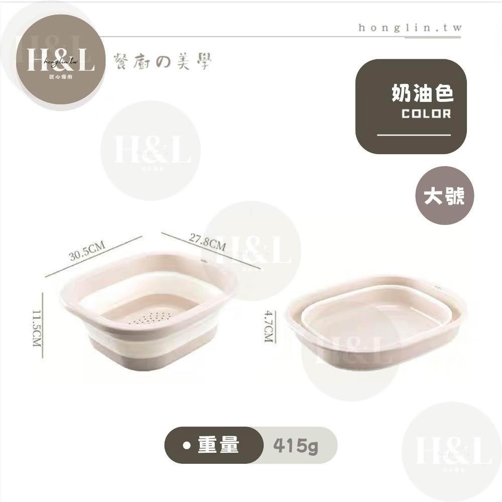 H&L 匠心優廚【奶油二合一折疊瀝水籃】多功能瀝水盆 瀝水籃 露營瀝水藍 多功能折疊瀝水藍 旅行戶外 洗菜籃 瀝水盆 水果籃 收納籃