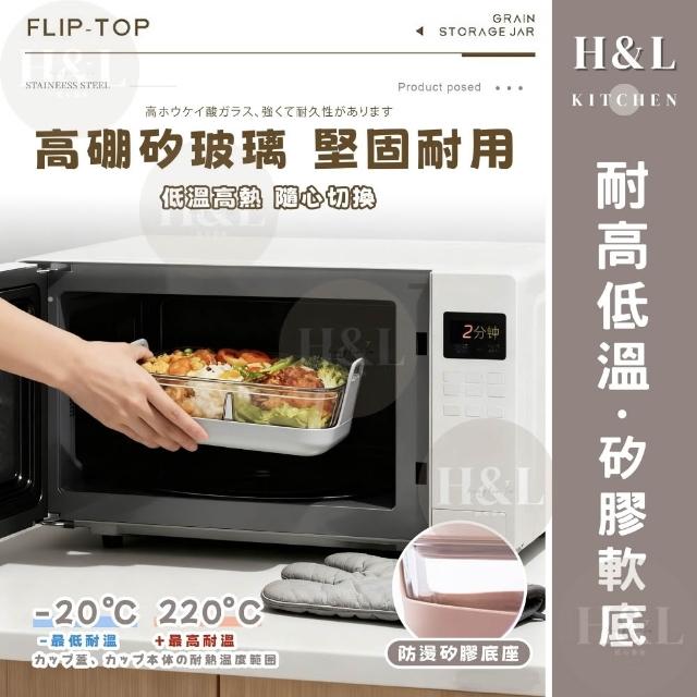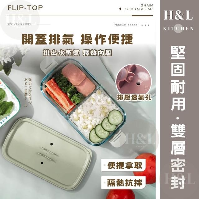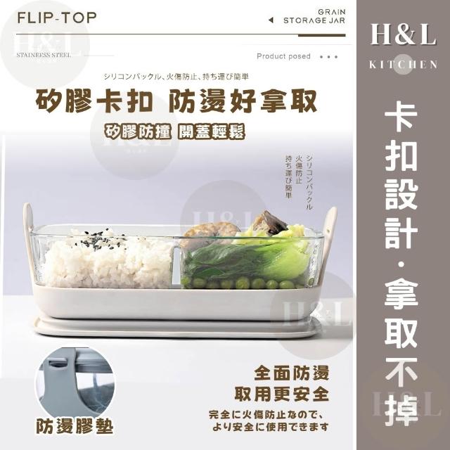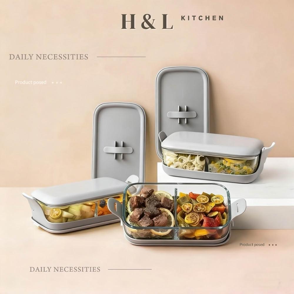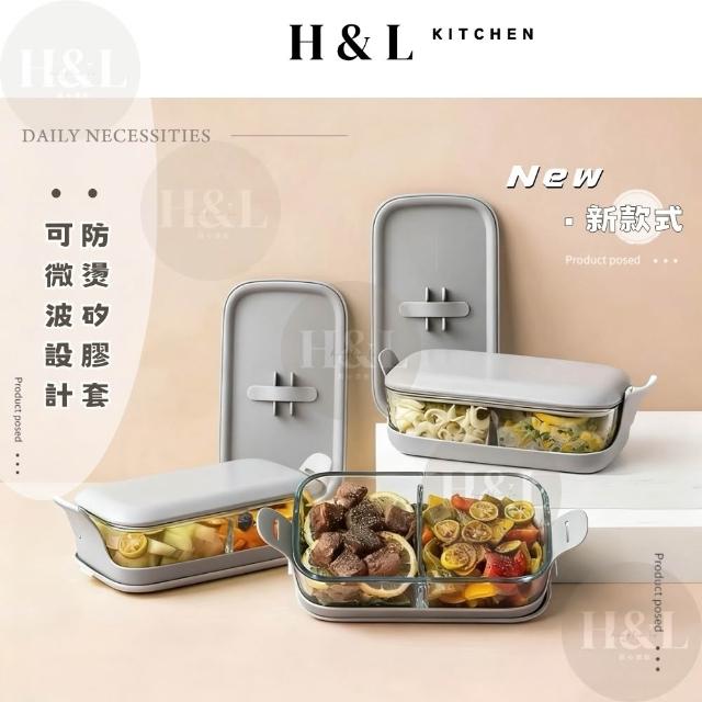 H&L 匠心優廚多功能玻璃保鮮盒 【防燙矽膠套|高耐熱|分隔保鮮】保鮮盒 密封保鮮盒 便當盒 玻璃便當盒 分隔 餐盒 飯盒 可微波 微波