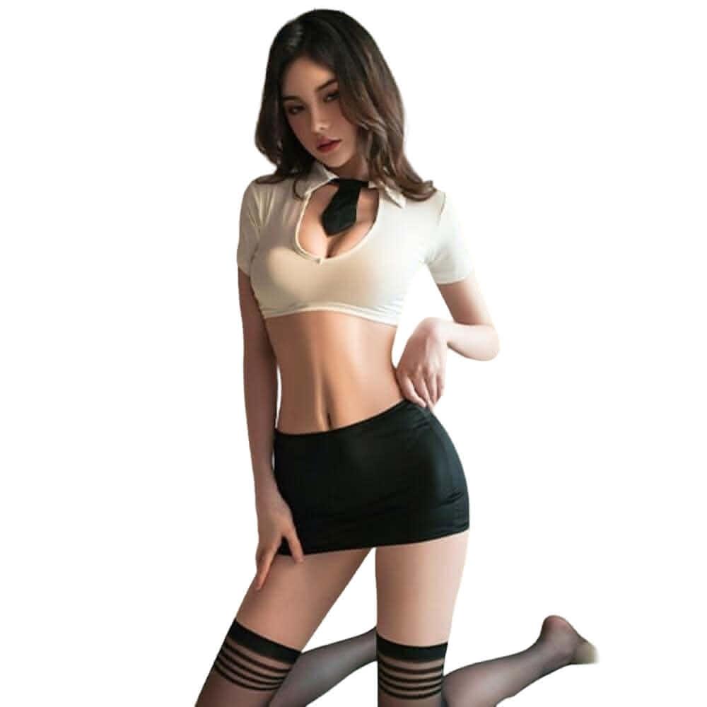 秘書角色扮演服!前挖空U字領小領帶迷人露腰短裙五件式套裝-含絲襪(情趣內衣 情趣衣物 開襠衣物)