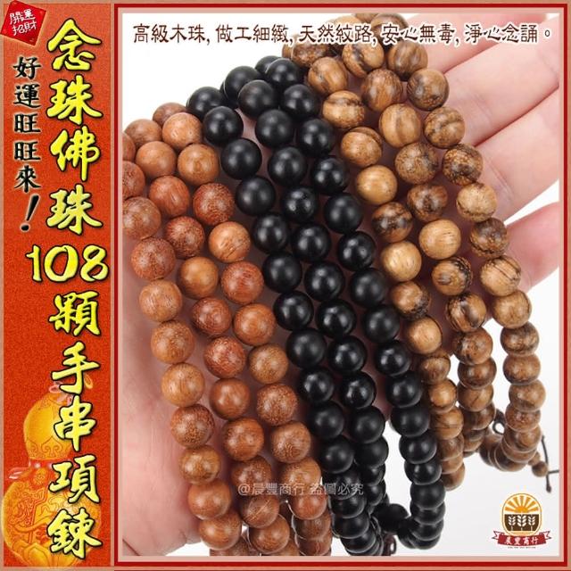 晨豐商行108顆靜心佛珠 天然黑檀木 越南沉香 花梨木 念珠 手串 項鍊 驅邪化煞開運 108顆念珠佛珠8mm