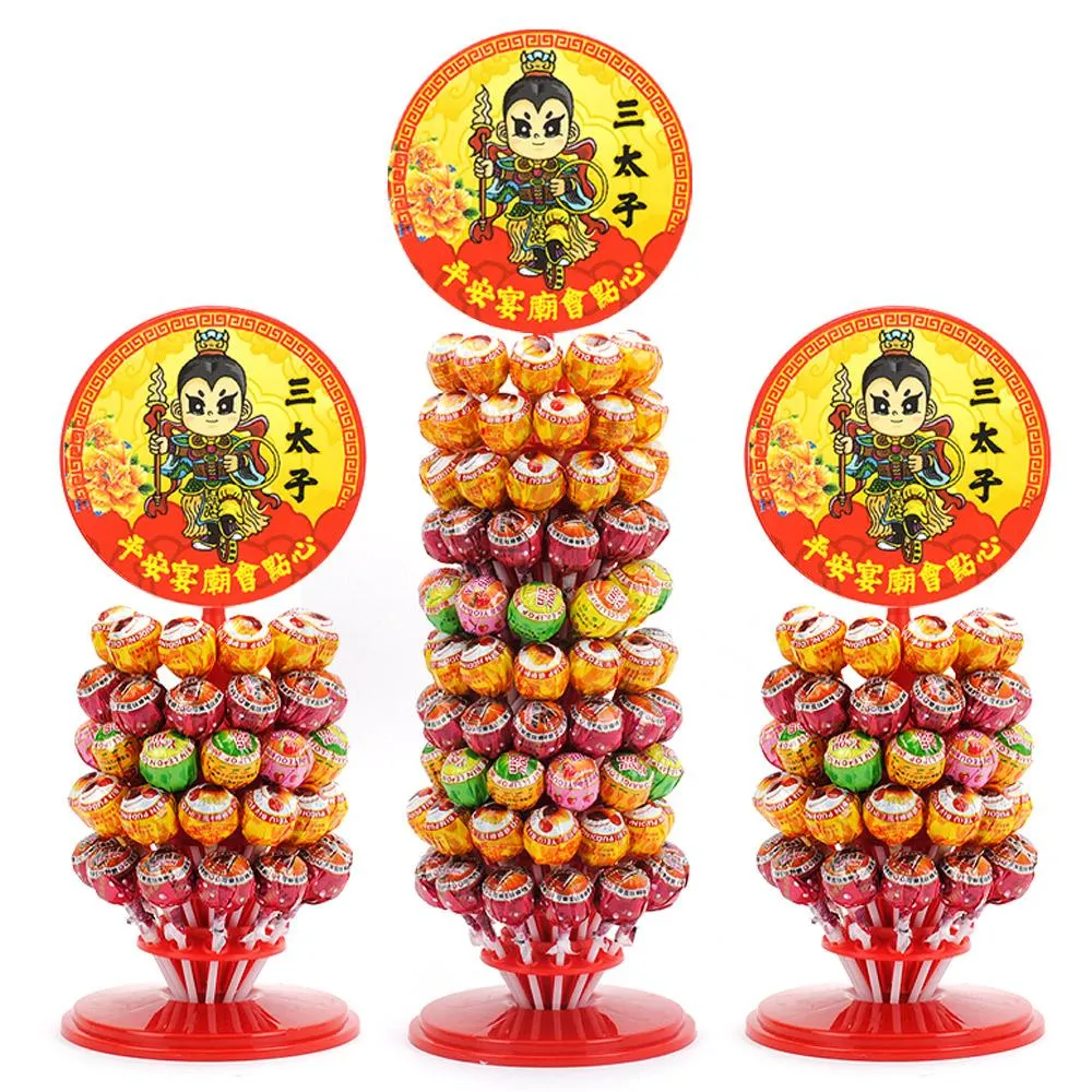 晨豐商行三太子廟會點心)立牌-精選3色糖果架60入.120入.步步高升高塔.口味混搭款(三太子廟會點心棒棒糖高塔