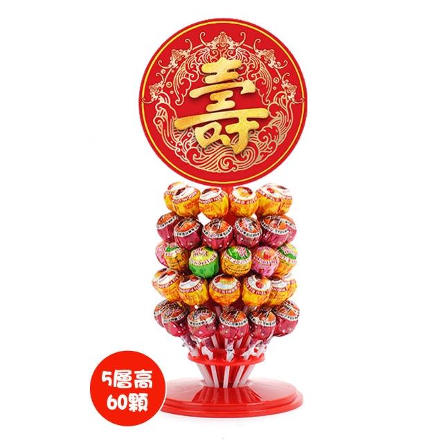 晨豐商行祝壽)立牌-精選3色糖果架60入.120入.步步高升高塔.口味混搭款(祝壽棒棒糖高塔