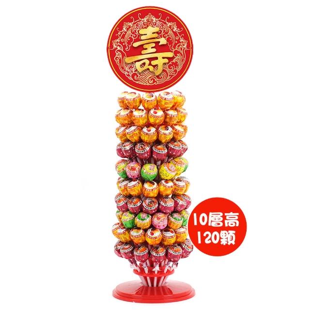 晨豐商行祝壽)立牌-精選3色糖果架60入.120入.步步高升高塔.口味混搭款(祝壽棒棒糖高塔