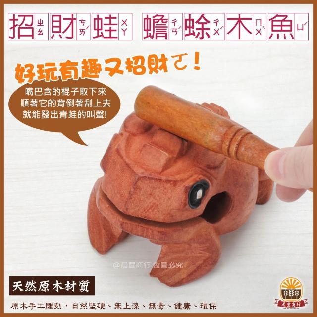 晨豐商行泰國招財蛙木頭發聲轉運吉祥蟾蜍木魚/實木手工藝雕刻青蛙木魚3種大小 泰國招財蛙轉運蟾蜍木魚