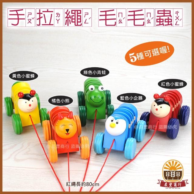 晨豐商行兒童木製卡通動物拉繩/毛毛蟲拉繩玩具/寶寶拖拉學走路益智玩具/1~3歲(兒童木製拉繩玩具車)隨機出貨