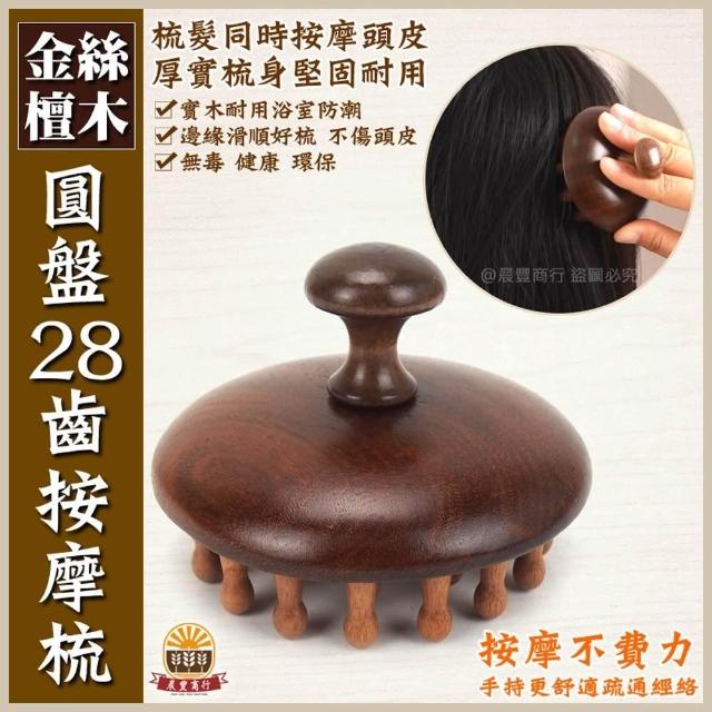 晨豐商行天然金絲檀木/手持圓盤28齒按摩梳/梳子/刮痧按摩養生梳/頭皮按摩/檀香木梳原木梳禮物(圓盤28齒按摩梳)
