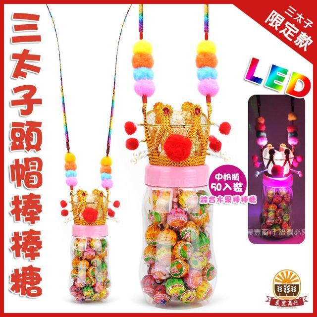 晨豐商行中壇元帥聖誕千秋-三太子LED發光頭帽棒棒糖奶瓶裝/中奶瓶30入.50入/三太子最愛棒棒糖/太子生日秒殺供品