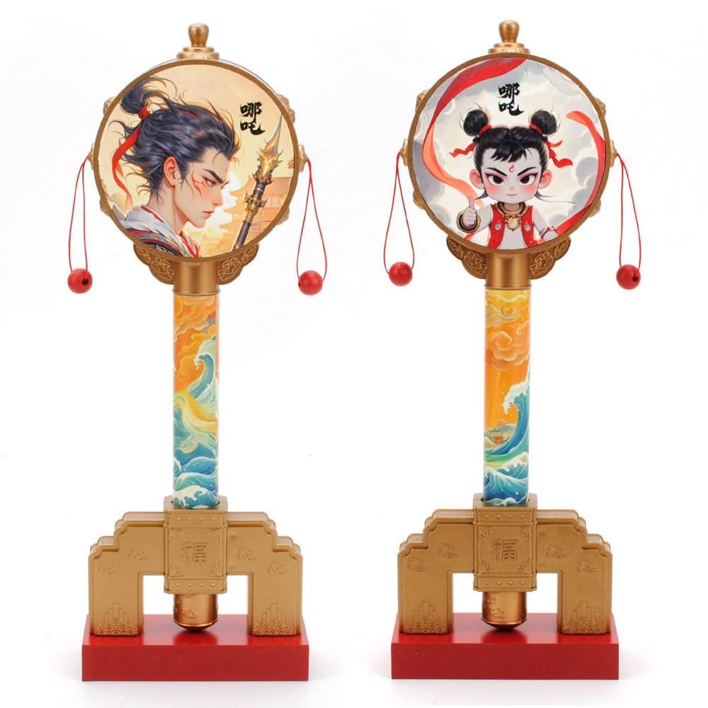 晨豐商行三太子.中壇元帥 哪吒限定波浪鼓.兒童打擊樂器 懷舊雙面鼓 /中國鼓-高級紙盒