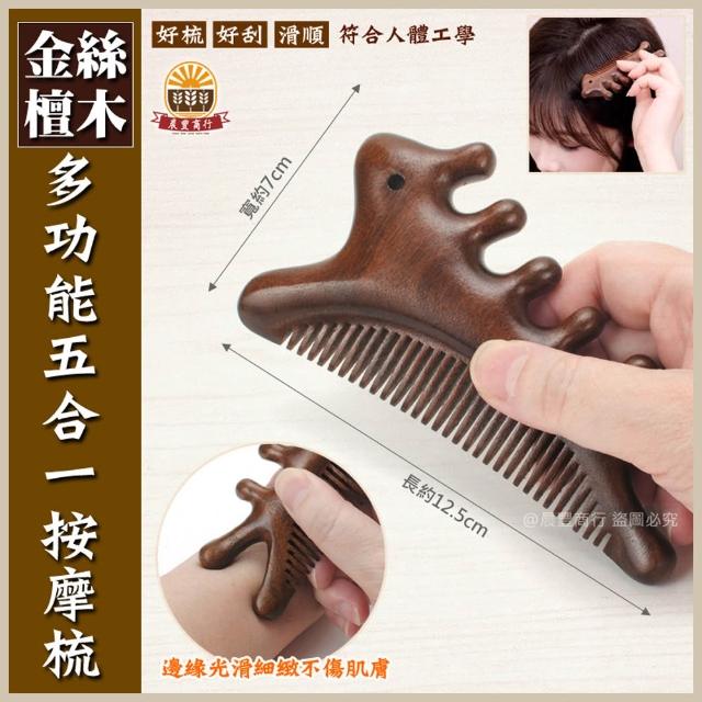 晨豐商行多功能五合一金絲檀木按摩梳 養生按摩梳 按摩梳子 頭皮按摩 臉部按摩 穴位按摩 經絡梳