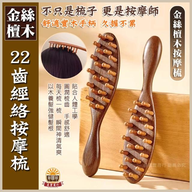 晨豐商行金絲檀木22齒經絡按摩梳/刮痧按摩養生梳/頭皮按摩梳