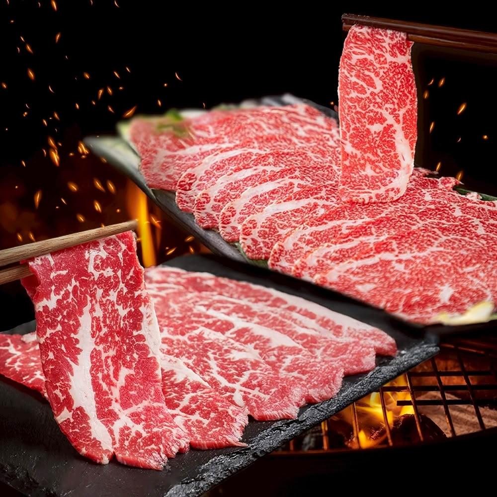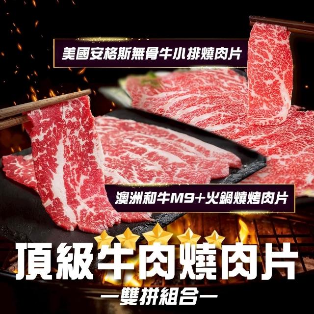 海肉王超市美國安格斯無骨牛小排燒肉片+澳洲和牛M9+火鍋燒烤肉片1盒組 各一盒