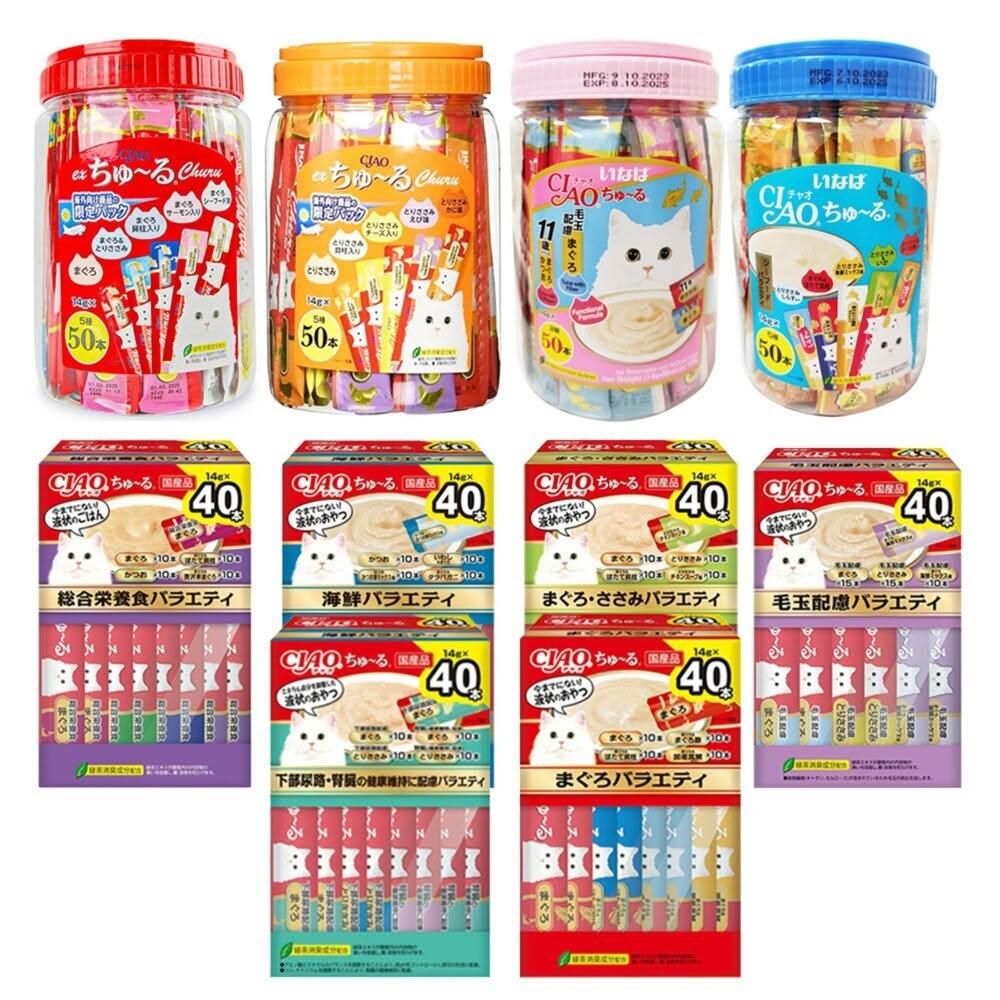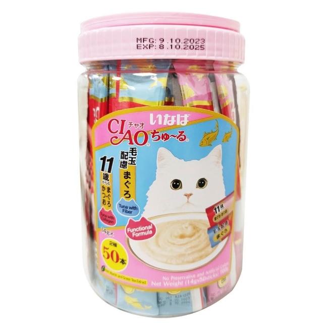 CIAOCiao 桶裝 啾嚕肉泥 50入 鮪魚綜合海陸 雞肉綜合海鮮 條狀包裝 紅桶 橘桶