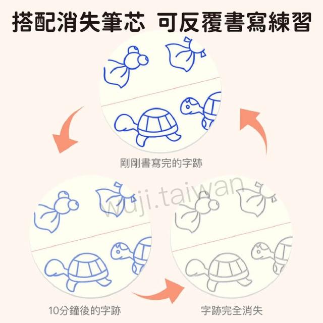 - 搭配消失筆芯, 可反覆書寫練習