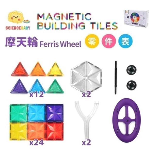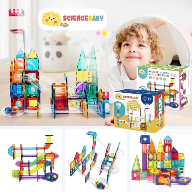 雪鑽高透光磁力片 ScienceBaby 彩窗 7.5cm 球道滾球 電動車軌道 摩天輪