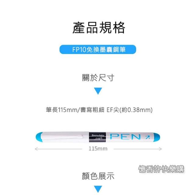 憶香許快樂購 白雪 FP10 直液式 彩色 鋼筆 EF尖 0.38mm 一次性 大容量 免換墨囊 鋼筆(直液式 彩色 鋼筆 0.38mm 免換墨囊 鋼筆)