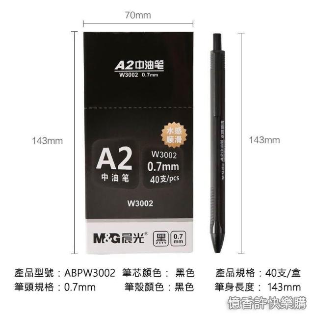 晨光文具憶香許快樂購 晨光文具 W3002 黑色 紅色 藍色 圓珠筆 按壓式 A2中油筆 按動中油筆 批發