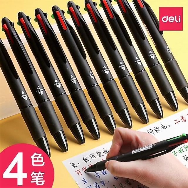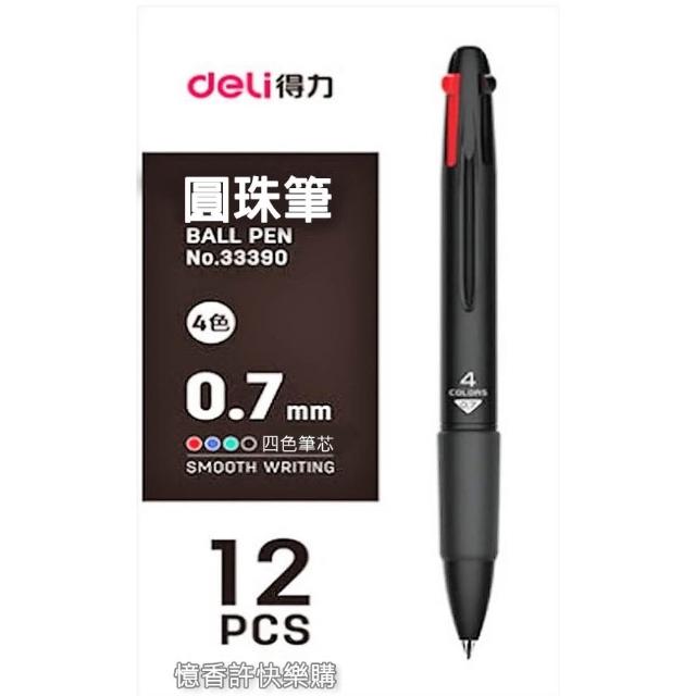 Deli 得力憶香許快樂購 得力 33390 四色按動式 0.7MM 圓珠筆 黑紅藍綠 學生 標記 書寫筆 筆芯