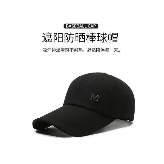 憶香許快樂購 帽子 棒球帽 帆布M鐵標 男女通用 休閒 百搭 防曬 遮陽 釣魚 加長沿 硬頂鴨舌棒球帽 戶外帽 運動帽