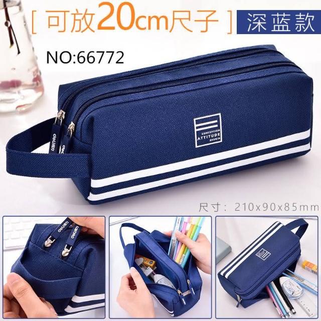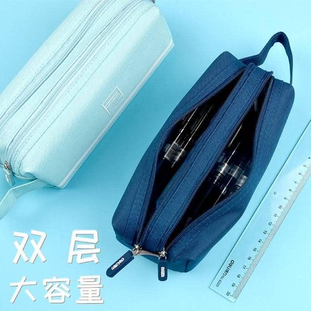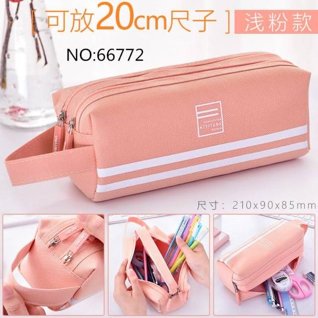 Deli 得力憶香許快樂購 得力 66772 簡約 筆袋 多功能 文具 大容量 雙層 拉鍊筆盒 男女款 收納筆袋 學生用(筆袋 大容量 雙層 拉鍊筆盒 男女款 收納筆袋)