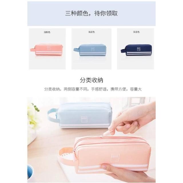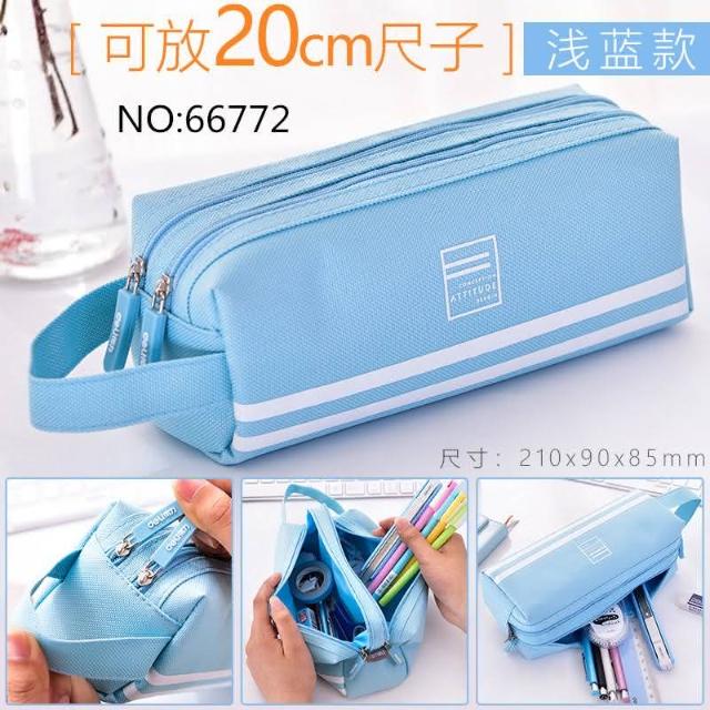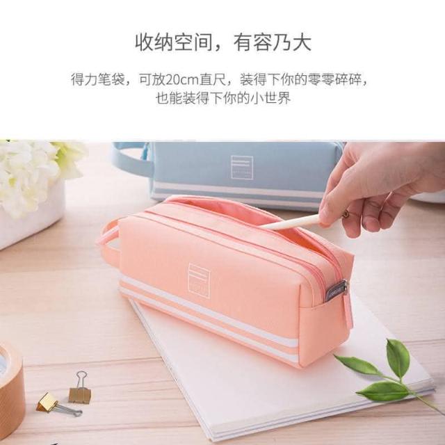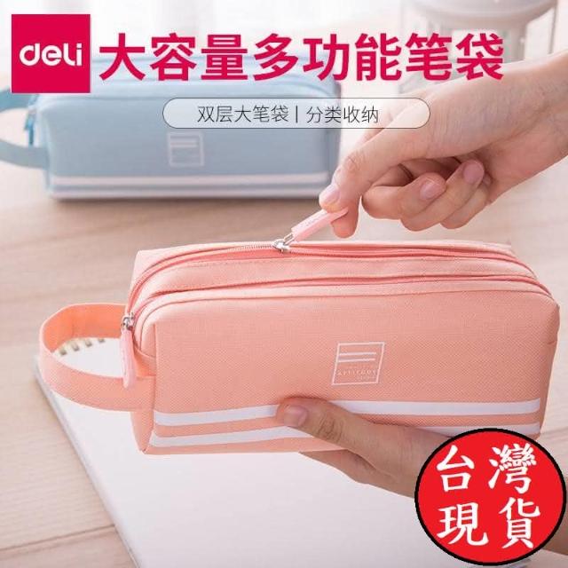 Deli 得力憶香許快樂購 得力 66772 簡約 筆袋 多功能 文具 大容量 雙層 拉鍊筆盒 男女款 收納筆袋 學生用(筆袋 大容量 雙層 拉鍊筆盒 男女款 收納筆袋)