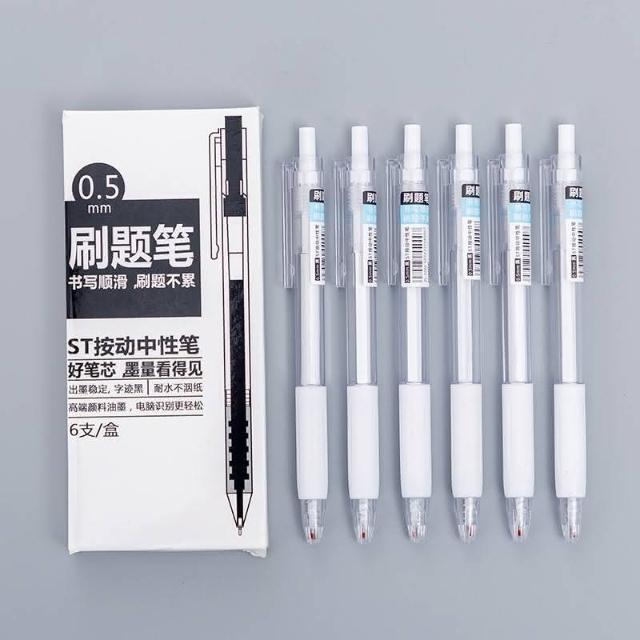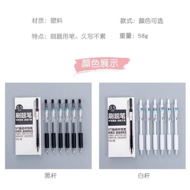 憶香許快樂購 盒裝 6支入 按動 大容量 刷題中性筆 黑 辦公 中性筆 水筆 學生 文具 獎品 禮品 按動中性筆(盒裝 6支入 按動 大容量 刷題中性筆 按動中性筆)