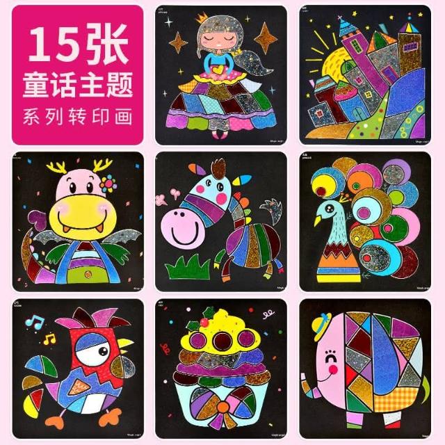 憶香許快樂購 兒童 神奇 魔幻藝術貼紙畫 幼兒園 創意 DIY 手工貼畫 斑彩紙 斑彩貼 魔幻藝術畫 可愛童話款(神奇 魔幻藝術貼紙畫 手工貼畫 魔幻藝術畫 可愛童話款)