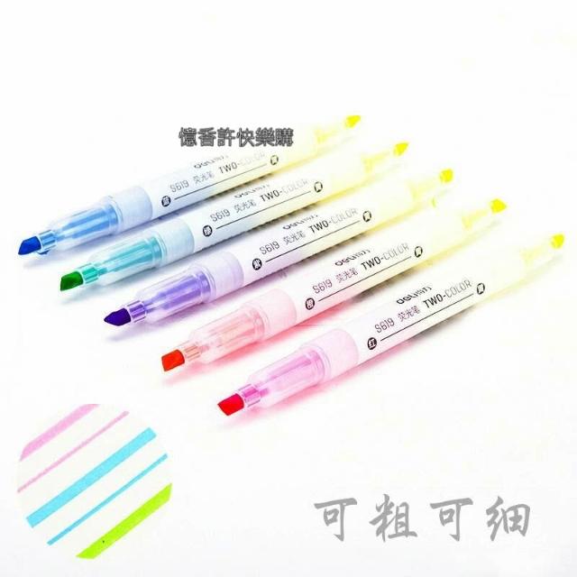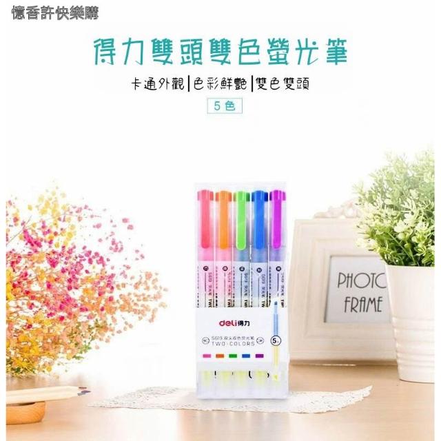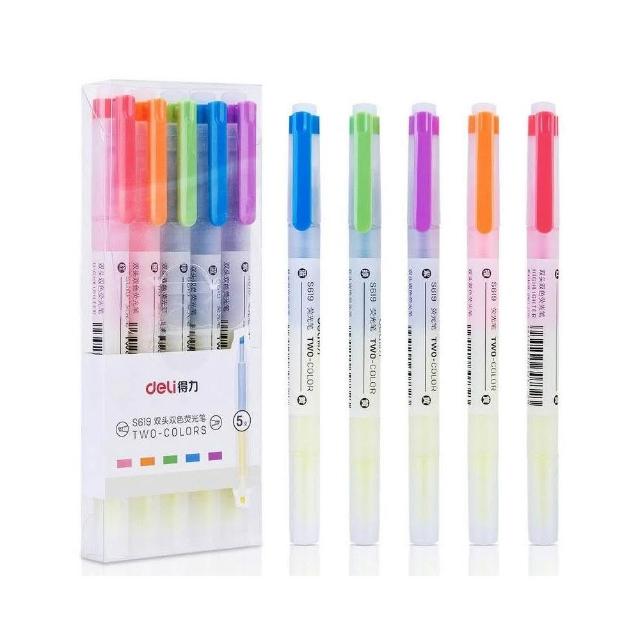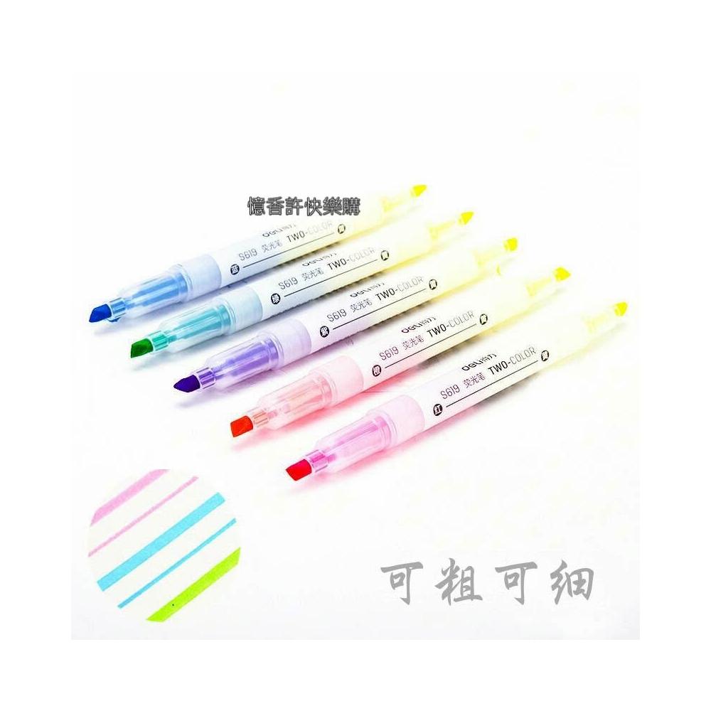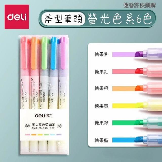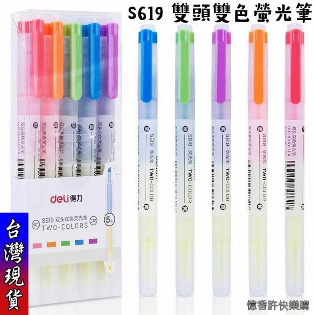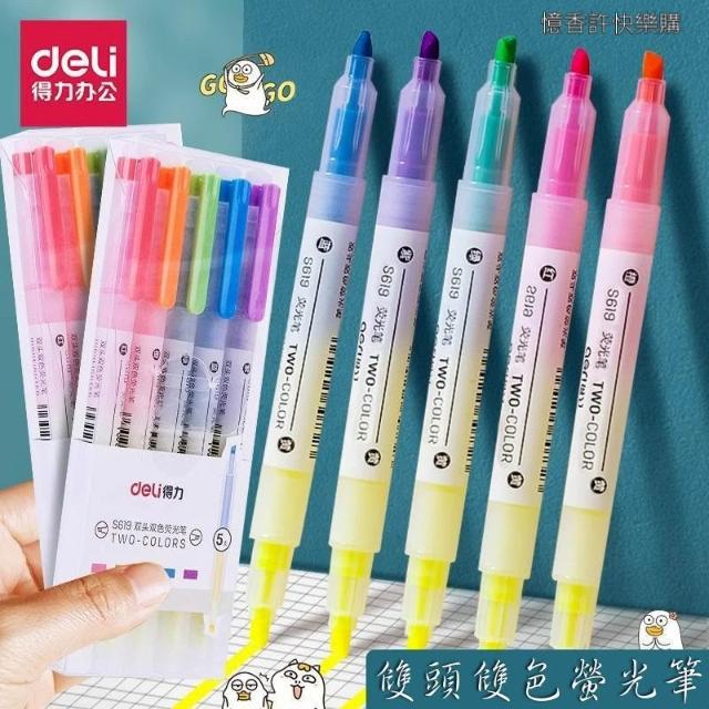 Deli 得力憶香許快樂購 得力 S619 炫彩 螢光筆 學生 筆記 標記筆 雙頭 彩色 記號筆 5支/盒 文具