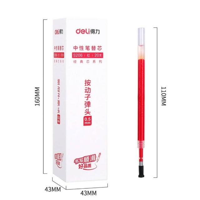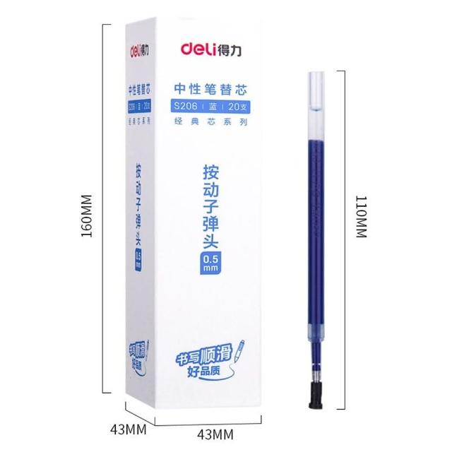 Deli 得力憶香許快樂購 得力 S206 中性筆芯 彈簧按壓式 0.5mm 彈簧頭 按動筆芯 水筆 S01 替芯 20支(中性筆芯 彈簧按壓式 0.5mm 按動筆芯 S01 替芯)
