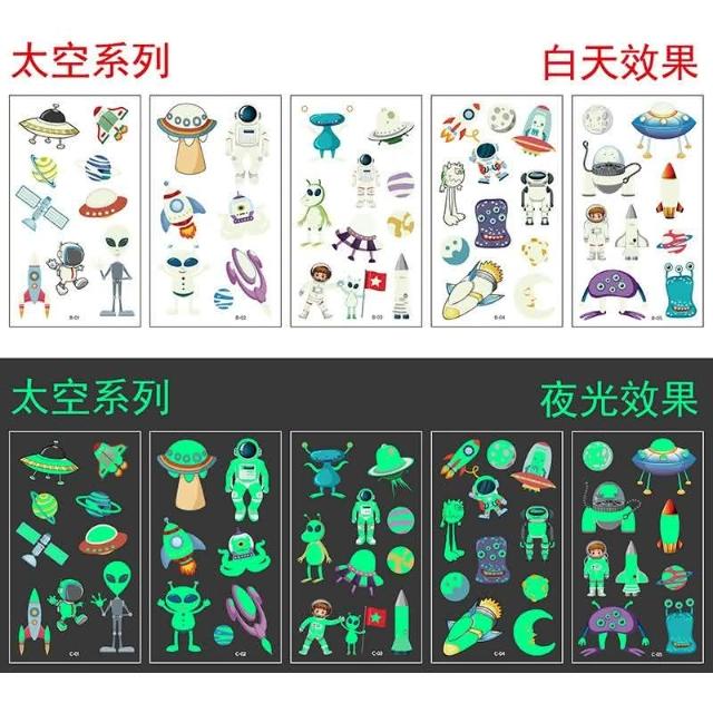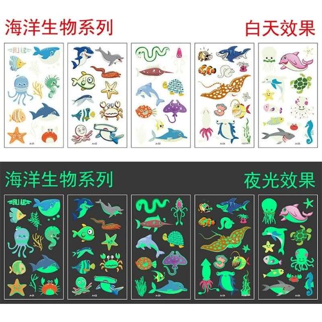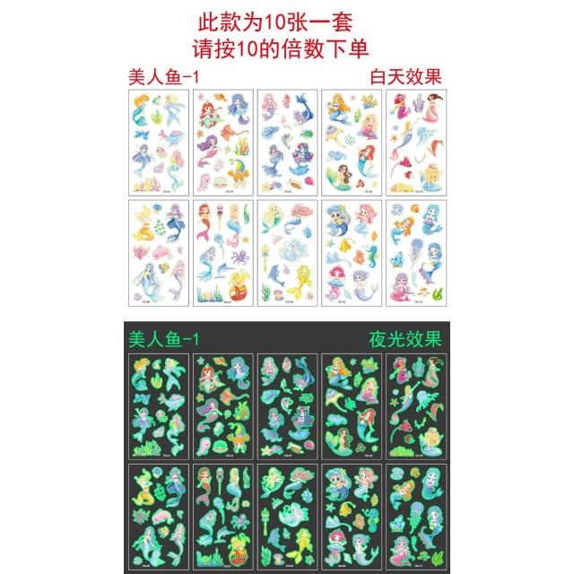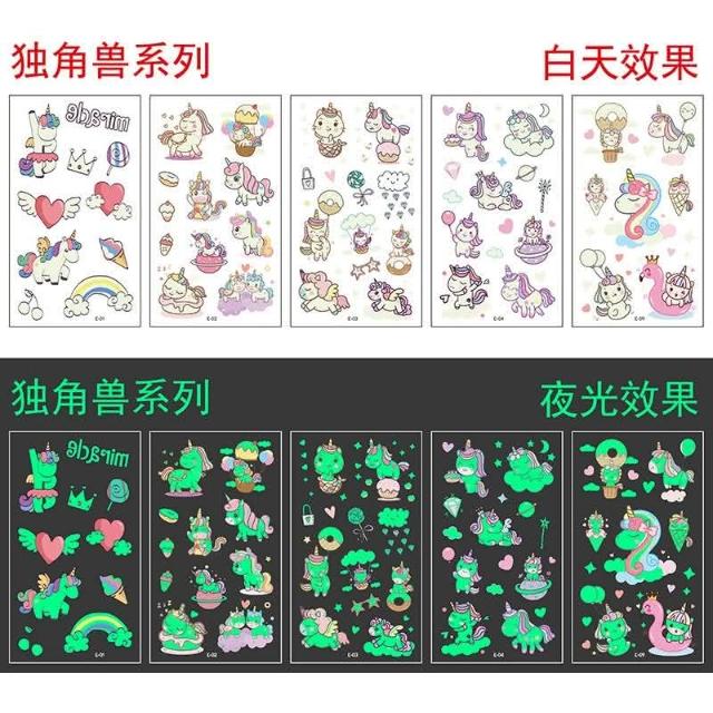 憶香許快樂購 新款 兒童 夜光紋身貼 卡通 夜光 美人魚 獨角獸 恐龍 螢光 浮水印 紋身貼紙 貼紙(夜光紋身貼 卡通 螢光 浮水印 紋身貼紙 貼紙)