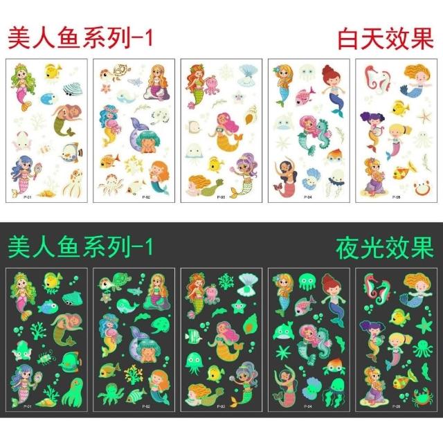 憶香許快樂購 新款 兒童 夜光紋身貼 卡通 夜光 美人魚 獨角獸 恐龍 螢光 浮水印 紋身貼紙 貼紙
