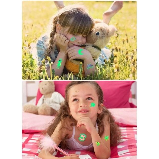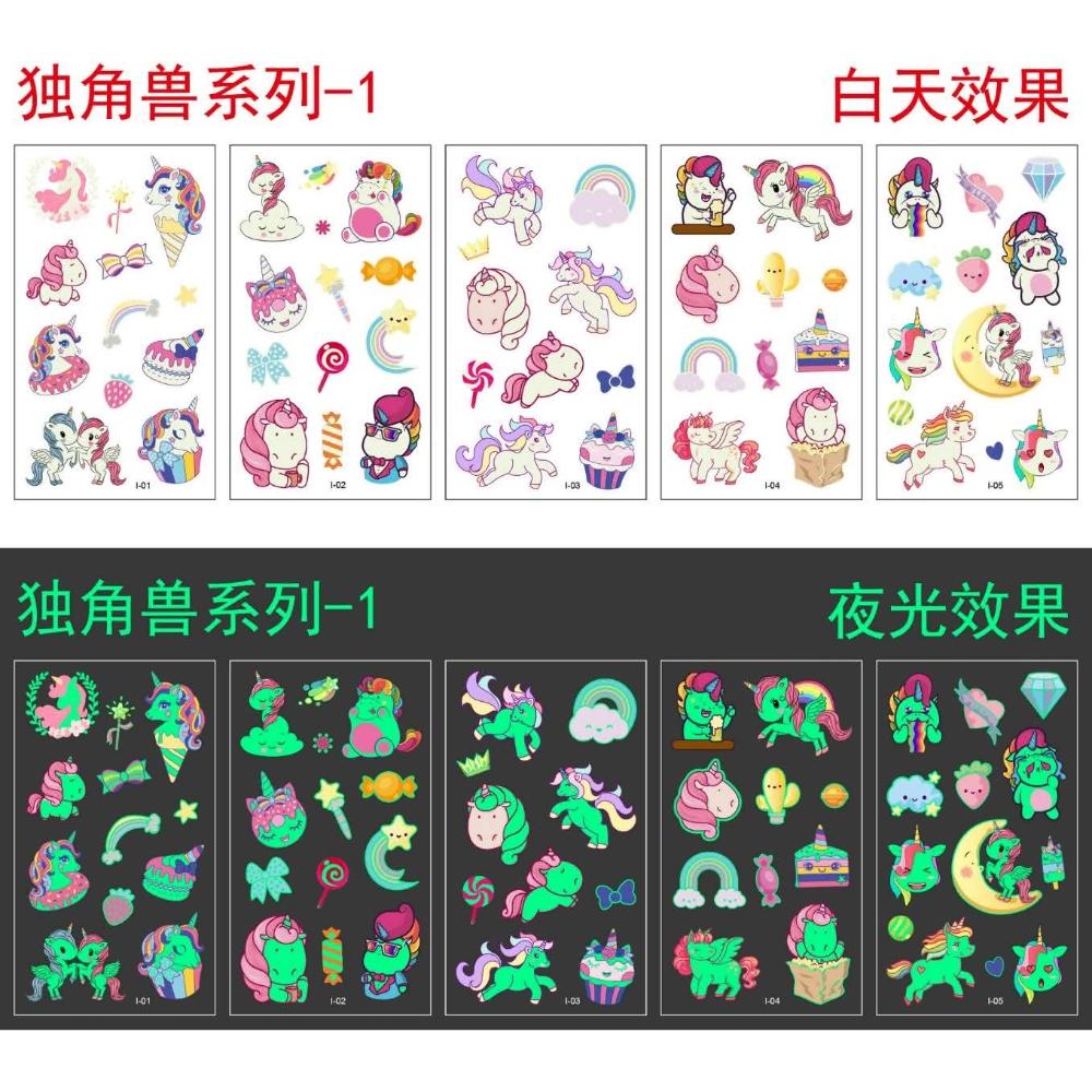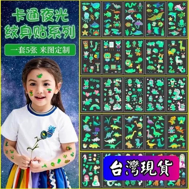 憶香許快樂購 新款 兒童 夜光紋身貼 卡通 夜光 美人魚 獨角獸 恐龍 螢光 浮水印 紋身貼紙 貼紙