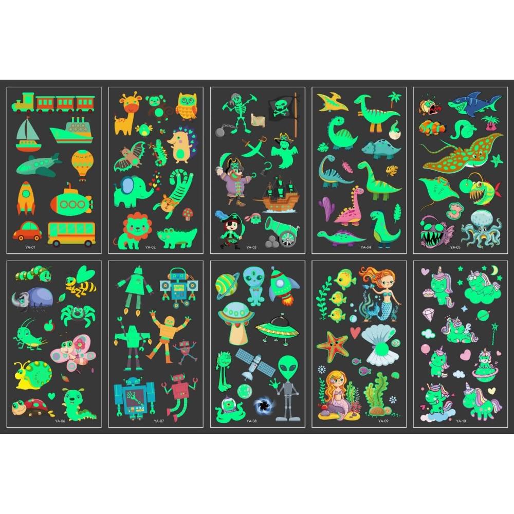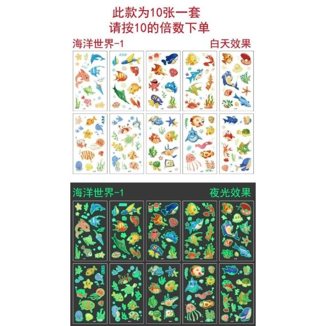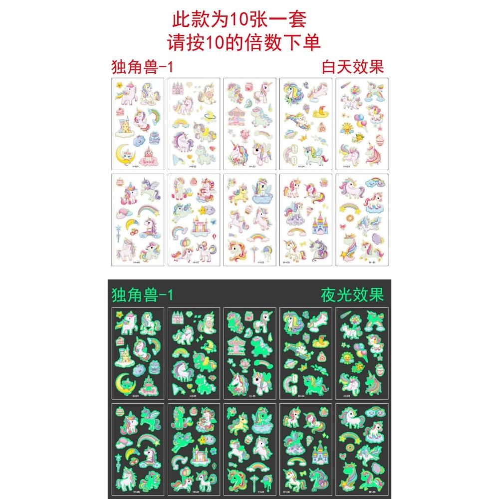 憶香許快樂購 新款 兒童 夜光紋身貼 卡通 夜光 美人魚 獨角獸 恐龍 螢光 浮水印 紋身貼紙 貼紙