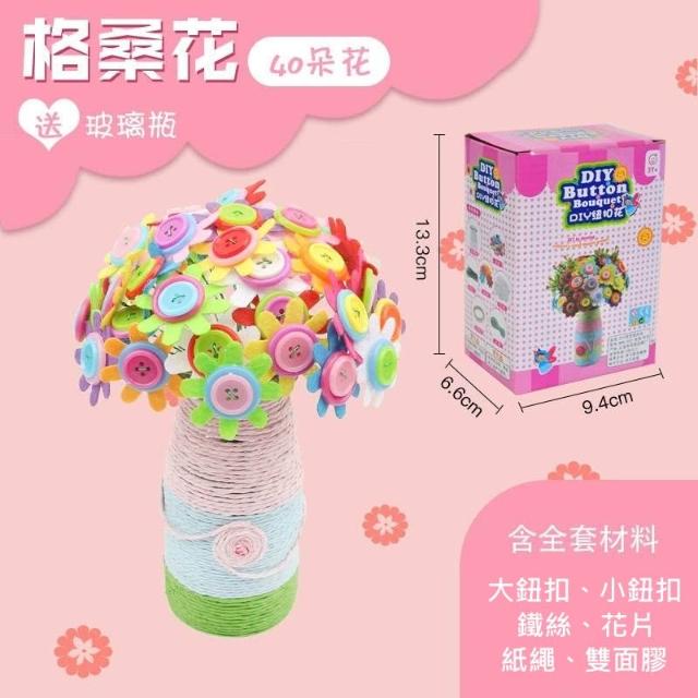 憶香許快樂購 鈕扣花束 手工 DIY 布藝 製作 材料包 鈕扣花 兒童 幼稚園 母親節 禮物 扣子畫(鈕扣花束 手工 DIY 布藝 材料包 鈕扣花 扣子畫)