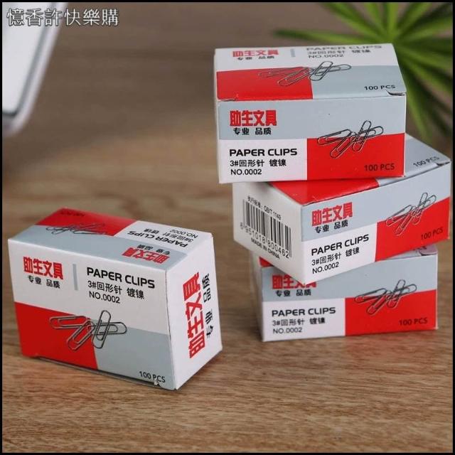 憶香許快樂購 辦公用品 文具 回形針 3號 金屬回形針 別曲針 盒裝 80枚 迴紋針(3號 金屬回形針 別曲針 盒裝 80枚 迴紋針)