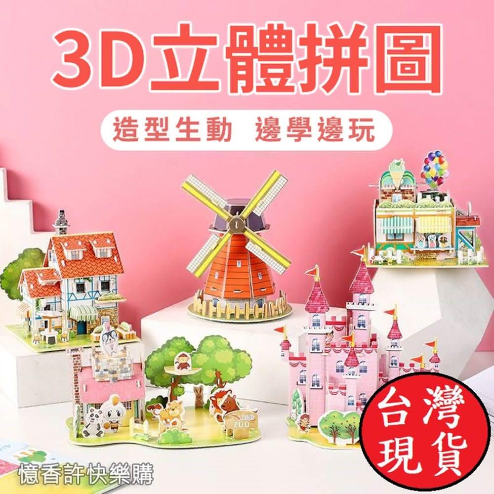 憶香許快樂購 兒童 3D 立體拼圖 中號 4片 卡通 手工 DIY 益智 紙質 拼裝 模型 玩具 禮物 幼稚園 手工(3D 立體拼圖 卡通 手工 DIY 益智 紙質 拼裝 模型 玩具)