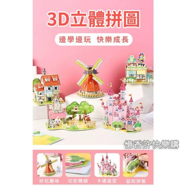 憶香許快樂購 兒童 3D 立體拼圖 中號 4片 卡通 手工 DIY 益智 紙質 拼裝 模型 玩具 禮物 幼稚園 手工(3D 立體拼圖 卡通 手工 DIY 益智 紙質 拼裝 模型 玩具)