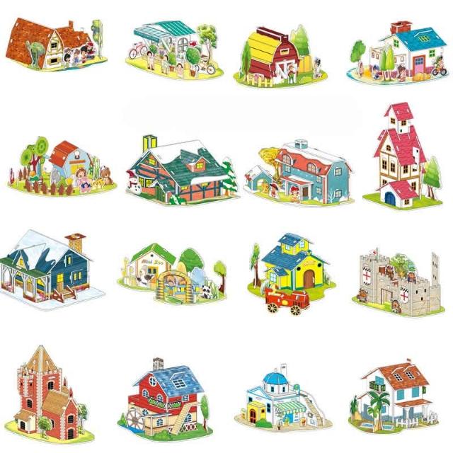 憶香許快樂購 3D立體拼圖 小號 2片 動物 建築 歐式別墅 賽車 戰鬥機 DIY 益智 玩具 手工拼板 學習教具(3D立體拼圖 小號 2片 動物 建築 戰鬥機 DIY 益智 玩具 手工拼板)