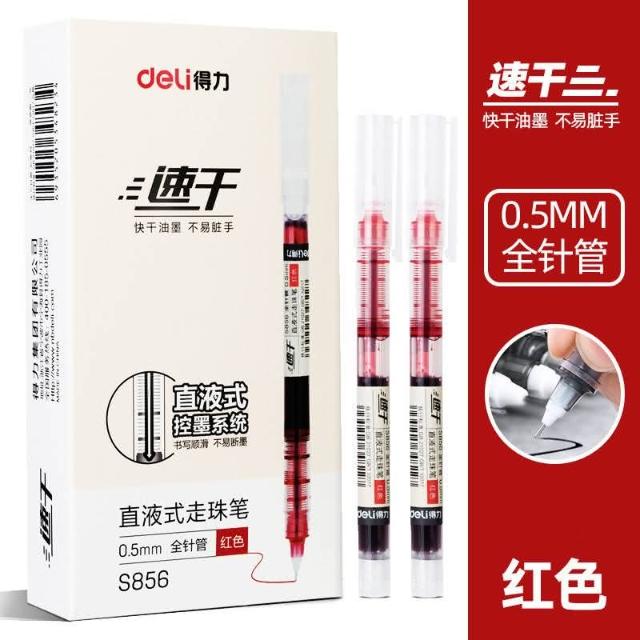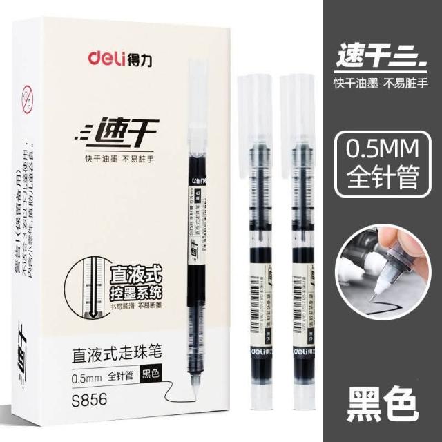Deli 得力憶香許快樂購 得力 S856 走珠筆 黑色 筆0.5mm 速乾 直液筆 碳素筆 水筆 考試可用 全針管(得力 S856 走珠筆 全針管 黑色 筆0.5mm 速乾 直液筆)