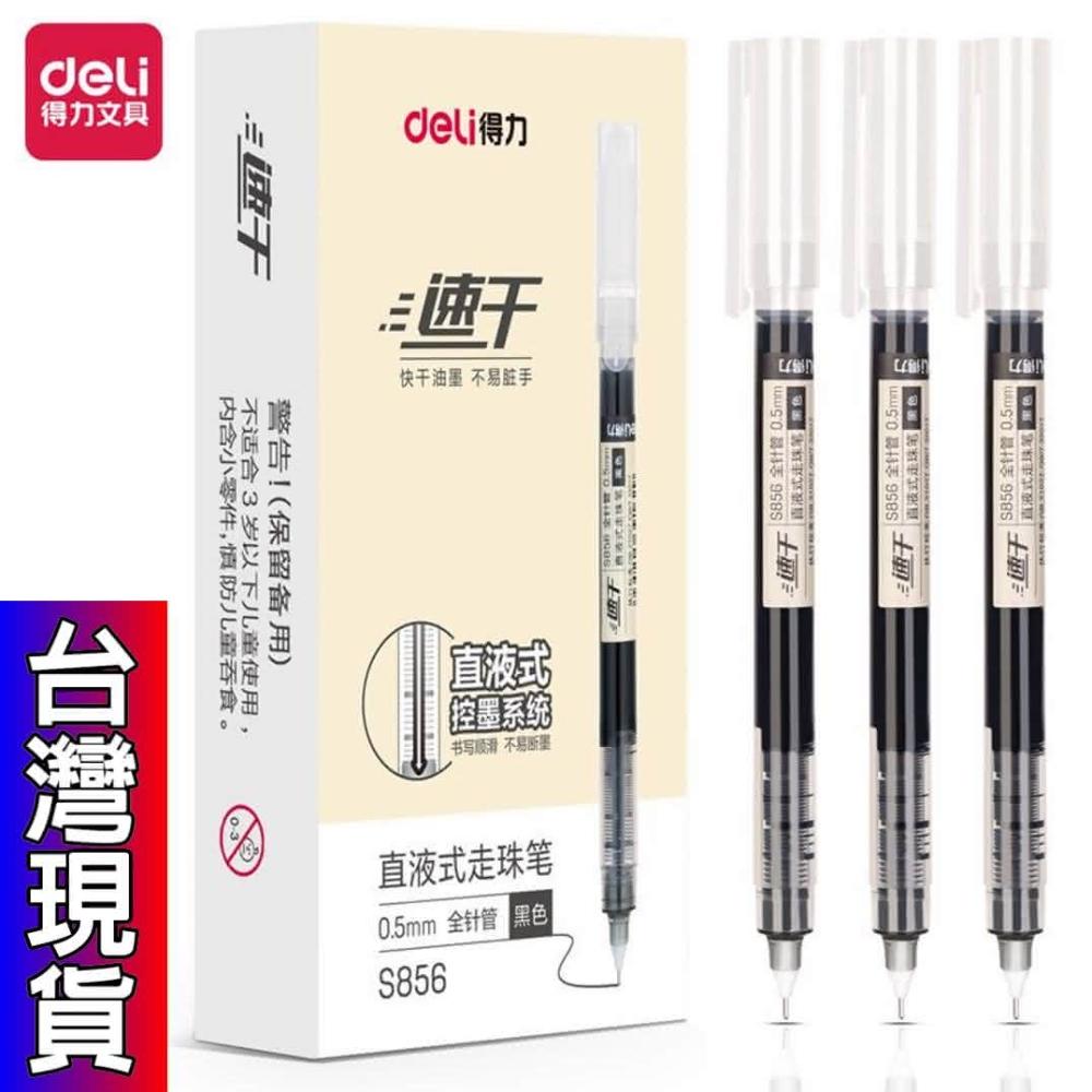 Deli 得力憶香許快樂購 得力 S856 走珠筆 黑色 筆0.5mm 速乾 直液筆 碳素筆 水筆 考試可用 全針管(得力 S856 走珠筆 全針管 黑色 筆0.5mm 速乾 直液筆)