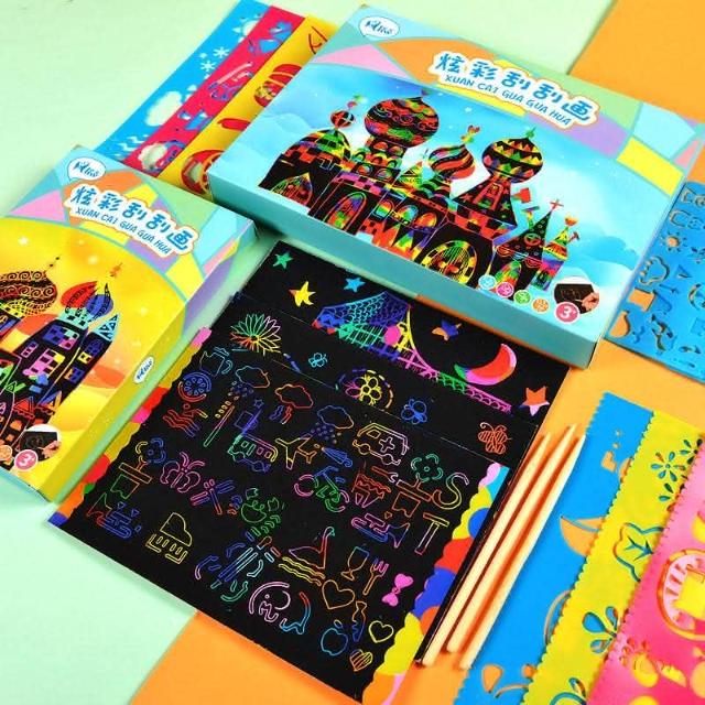 憶香許快樂購 刮刮畫 100張升級款 兒童 塗鴉本 炫彩刮畫紙 套裝 DIY 手工製作 創意 刮畫本 繪畫 玩具(刮刮畫 塗鴉本 炫彩刮畫紙 DIY 手工製作 刮畫本 繪畫)