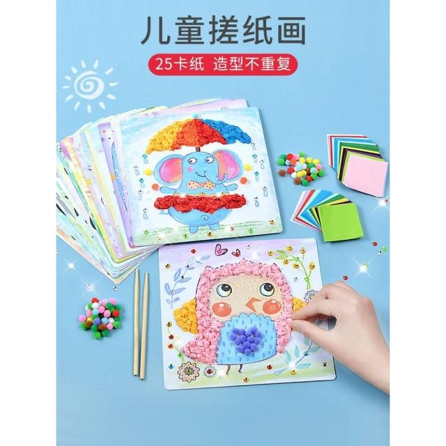 憶香許快樂購 幼稚園 兒童 16張造型卡+1800張彩紙 搓紙畫 DIY 製作 材料包 創意 搓紙 揉紙畫 粘紙粘貼畫 玩具(搓紙畫 DIY 製作 材料包 搓紙 揉紙畫 粘紙粘貼畫)