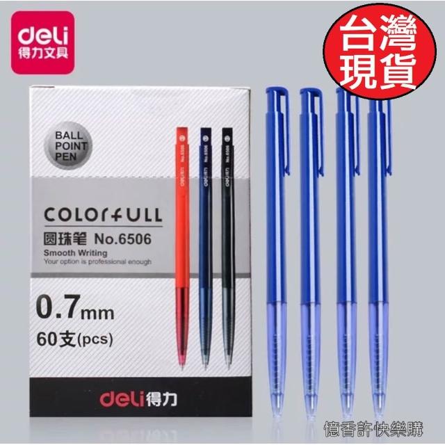 Deli 得力憶香許快樂購 得力 圓珠筆 自動圓珠筆 6506 得力 原子筆 按動型 0.7mm 黑色 藍色 紅色