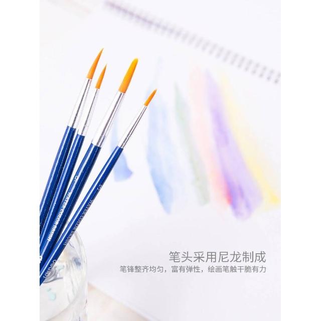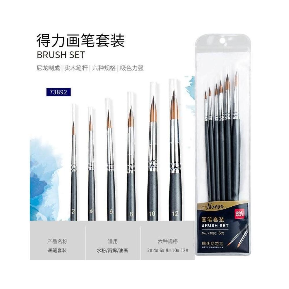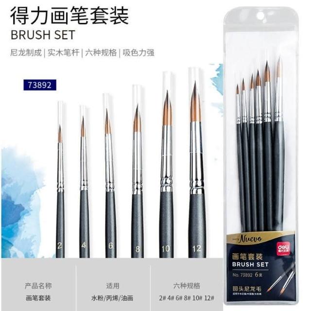 Deli 得力憶香許快樂購 得力 73892圓頭尼龍毛畫筆6支套裝 水彩畫筆 套裝 實木筆桿 4種規格 尼龍水彩畫筆 水彩筆 畫筆 筆刷(水彩畫筆 套裝 尼龍水彩畫筆 繪畫 顏料筆 水彩筆)