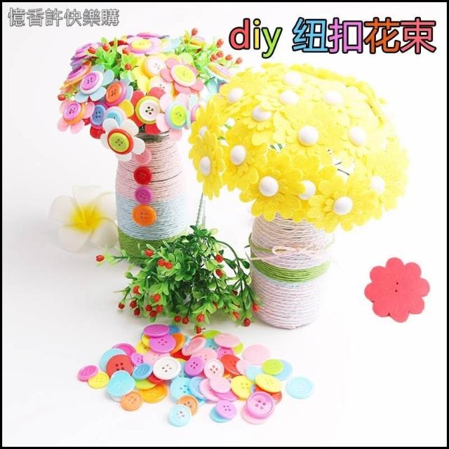 憶香許快樂購 鈕扣花束 40朵 精品盒裝 手工 DIY 布藝 製作 材料包 鈕扣花 兒童 幼稚園 母親節 禮物 扣子畫(鈕扣花束 手工 DIY 布藝 材料包 鈕扣花 扣子畫)